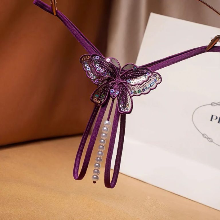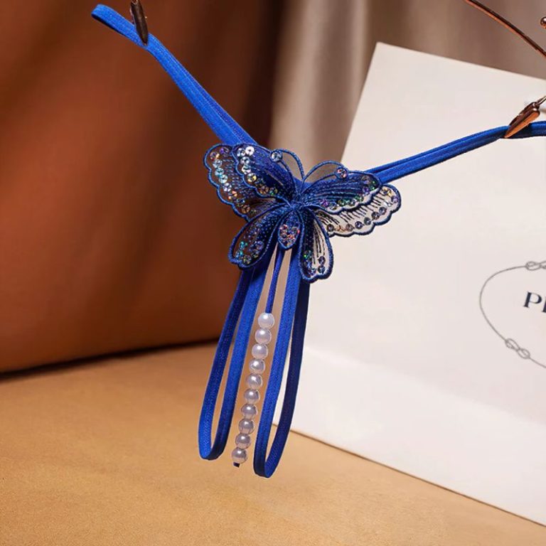 Egyptian Blue Open Crotch Pearl Thong Panty