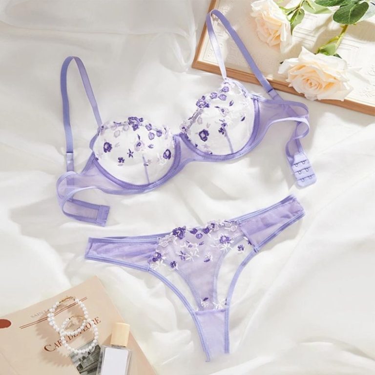 Black Transparent Set with Blue Flowers