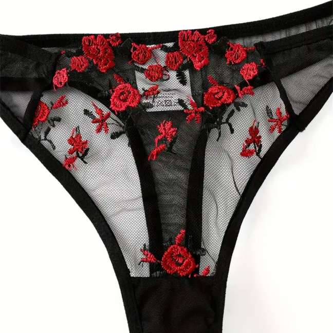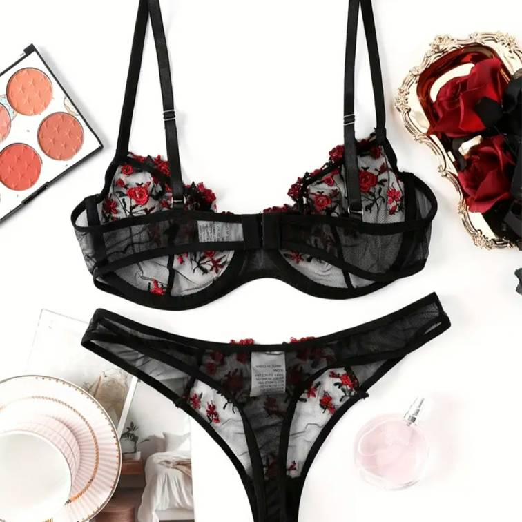 Black Transparent Set with Red Flowers